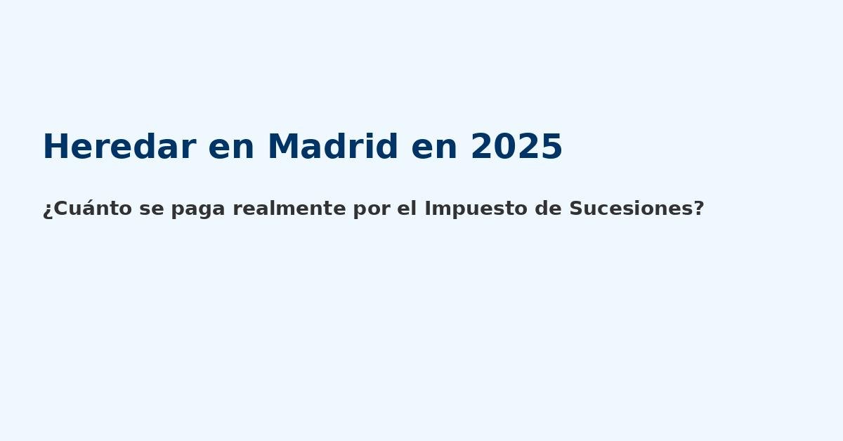 En 2025, heredar en Madrid sigue siendo una de las opciones más favorables en toda España, al menos para cónyuges, hijos y padres. Gracias a la bonificación del 99% y las reducciones autonómicas, es posible pagar solo unos pocos cientos de euros (o incluso menos) en herencias importantes.